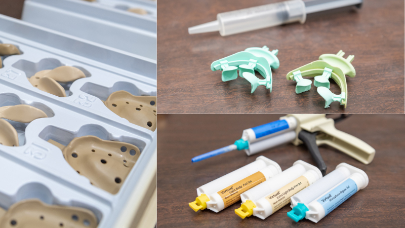 お口の型どりに用いる「印象材」は、一般的に1〜2種類しか使いません。一方、私どもは患者さまのお口の状態に合わせて印象材の硬さを変え、多いときで4〜5種類を使い分けます。これは当院のオリジナルテクニックです。